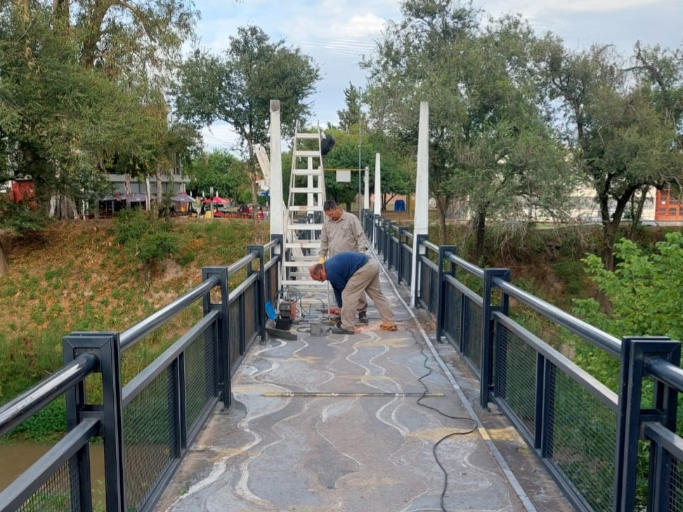 La pasarela Pedro Candioti, que une la calle Colombia con la Avenida Faustino Molina, fue pintada recientemente por personal del área de Servicio Públicos, coordinada por Damián Quinteros.