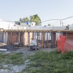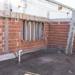 Hasta la fecha se hizo cimentación y mampostería hasta altura de dintel. También se completó el alero perimetral en hormigón visto con sus respectivas cajas para futuras luminarias y se realizaron instalaciones cloacales primarias.