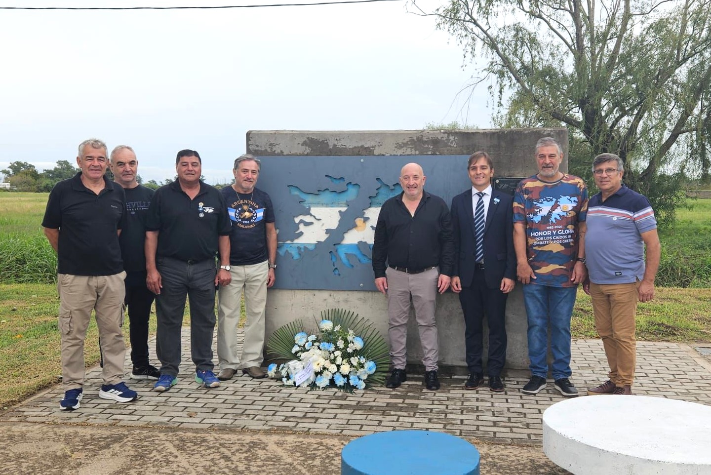La ofrenda floral que se dejó al pie de la bandera fue llevada luego del acto al monumento del Paseo de Malvinas por un grupo de veteranos, el intendente e integrantes de su gabinete.