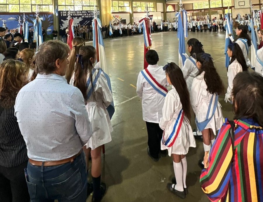 Veteranos que participaron del conflicto; sus hijos y familiares; autoridades; concejales; directivos de escuelas; abanderados; representantes de fuerzas vivas y vecinos se reunieron en el SUM del Colegio San José para honrar a los hombres que en plena juventud lucharon por la Patria.