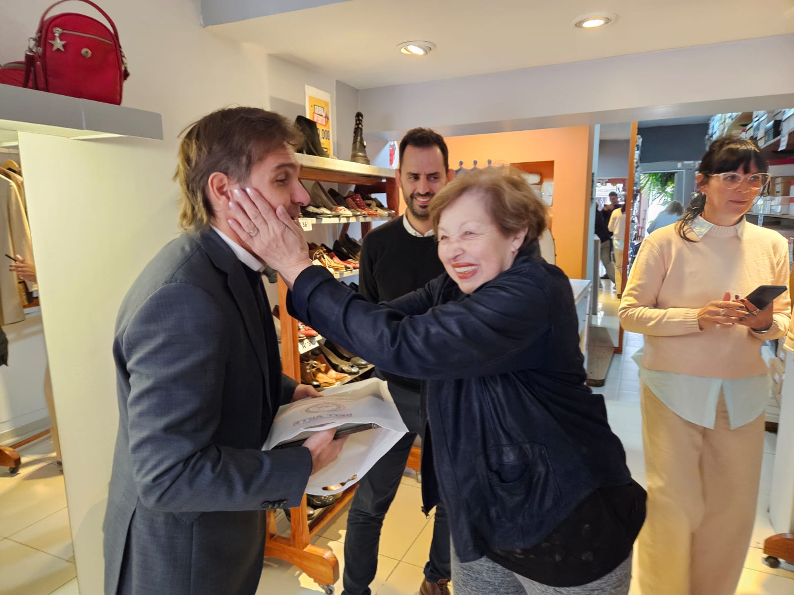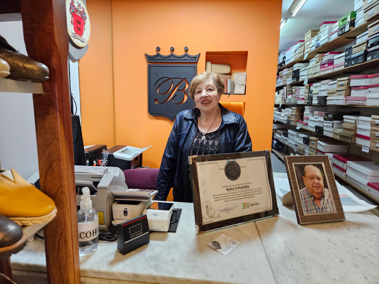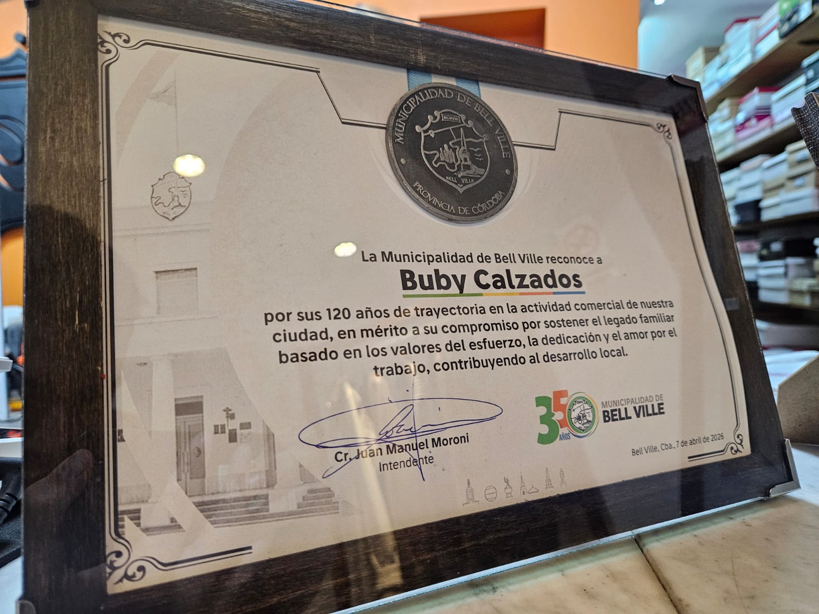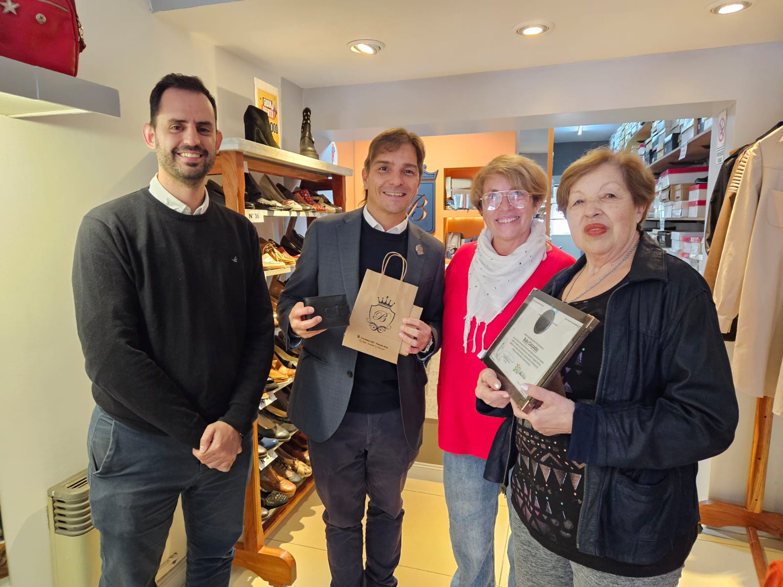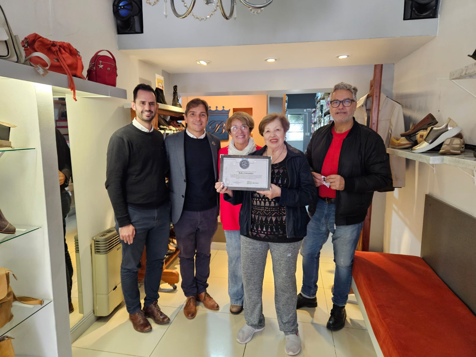 El miércoles por la mañana, el intendente Juan Manuel Moroni y el secretario de Economía Ricardo Bonini Colmano visitaron Buby Calzados, el popular negocio ubicado en calle Córdoba, y les entregaron a sus propietarias, Ileana Barquin y Eva “Pocha” López de Barquin, una placa en reconocimiento por 120 años de trayectoria comercial.