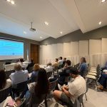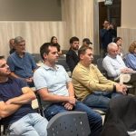El intendente Juan Manuel Moroni y el secretario de Economía Ricardo Bonini Colmano participaron de la primera conferencia. El lunes por la tarde, en el auditorio de Fundelo, escucharon la disertación del doctor Hugo Carassai, quien abordó los desafíos y oportunidades del contexto económico actual.