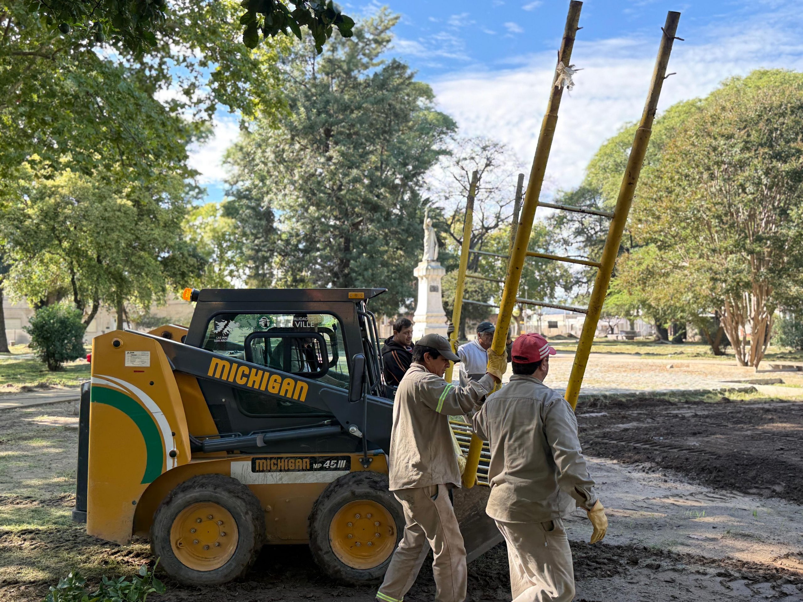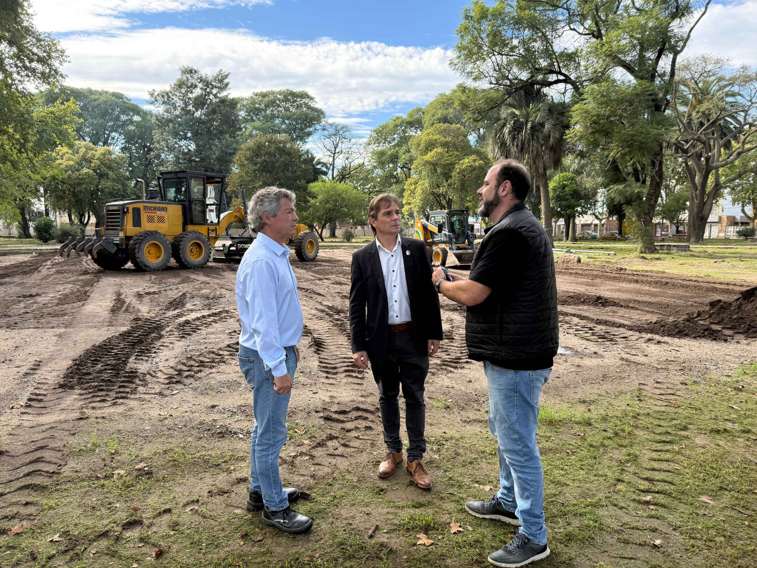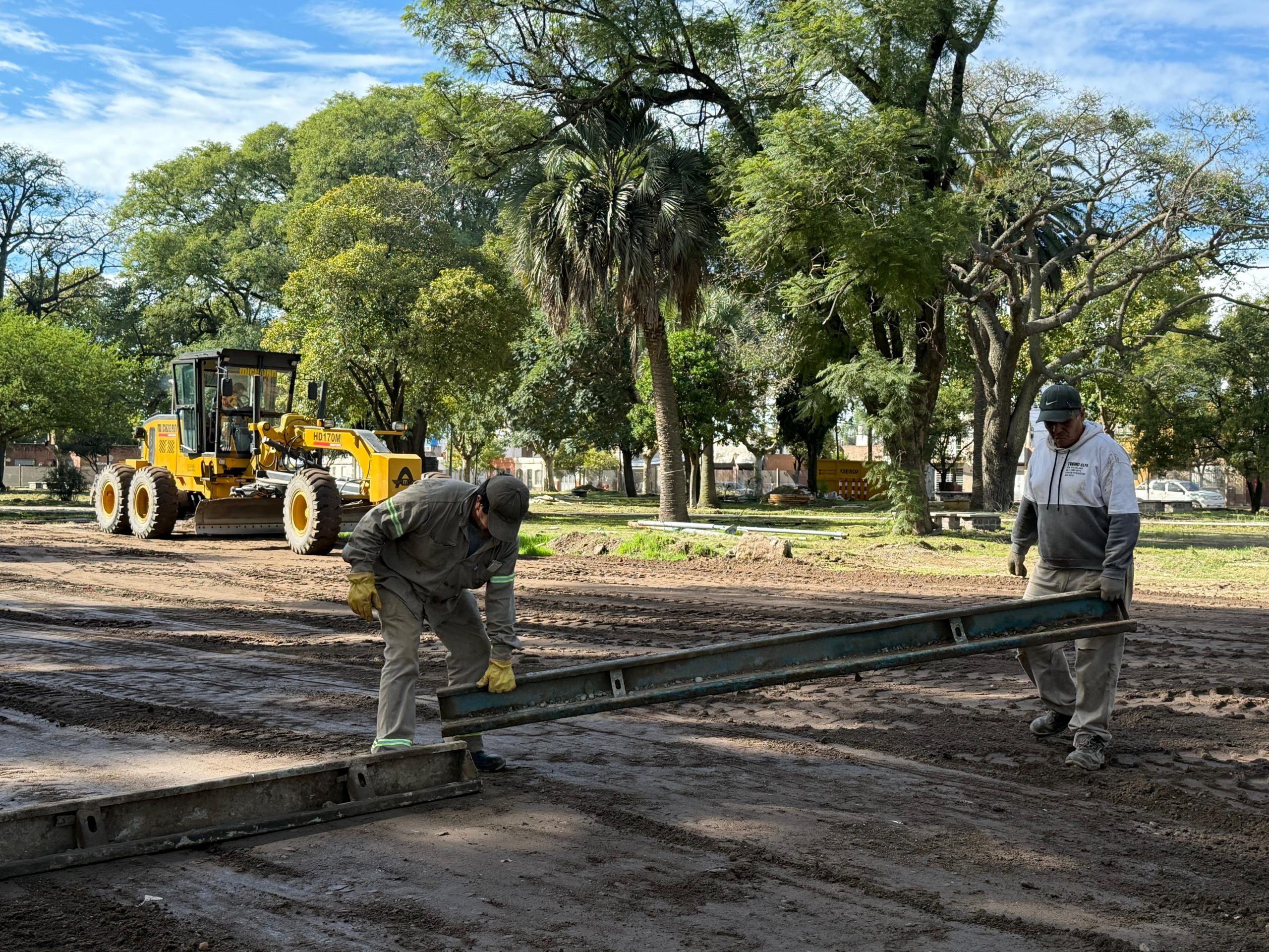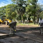 Personal municipal trabaja en la puesta en valor de plaza Rubén Márquez -concretamente, en el playón deportivo- y el intendente Juan Manuel Moroni recorrió el sector. Lo acompañaron el secretario de Obras, Servicios y Ambiente Ernesto Borrageros y personal técnico.