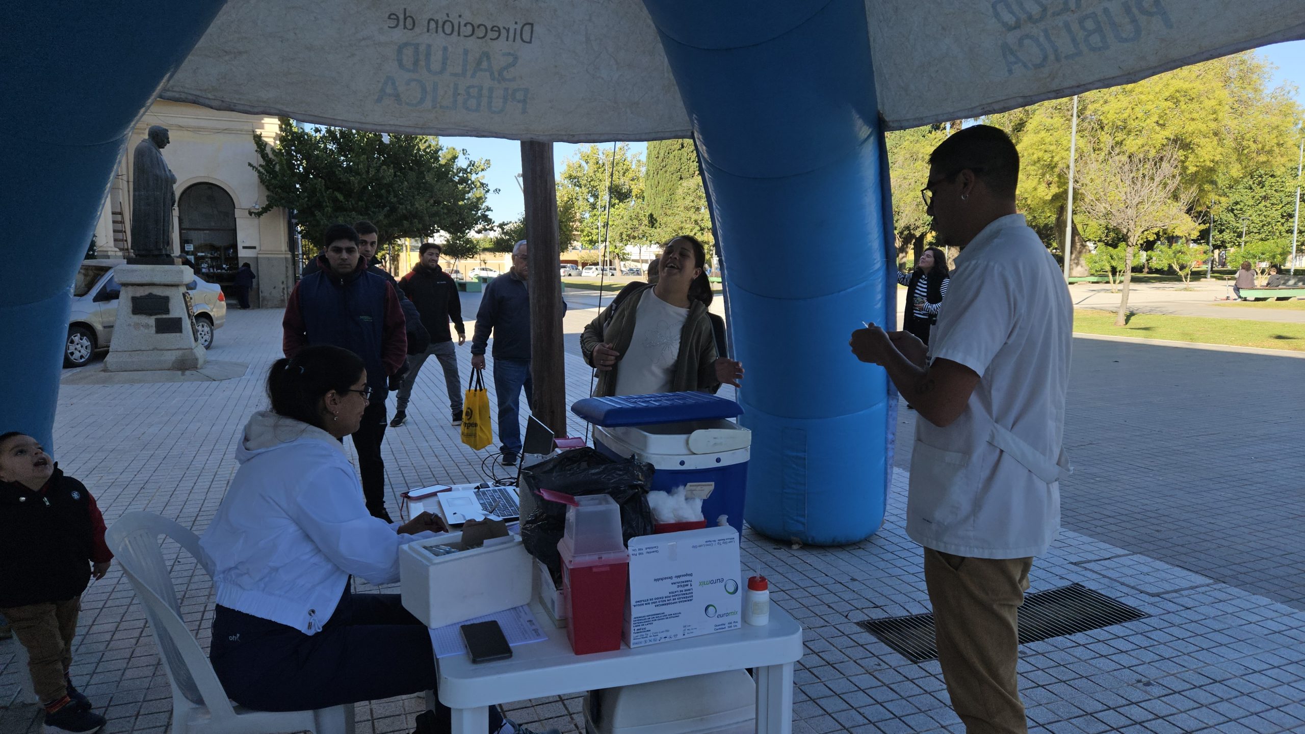 En el marco de la campaña de vacunación contra la gripe que comenzó en marzo, la dirección de Salud Pública de la Municipalidad salió a terreno e inmunizó a más de un centenar de personas en la plaza 25 de Mayo.